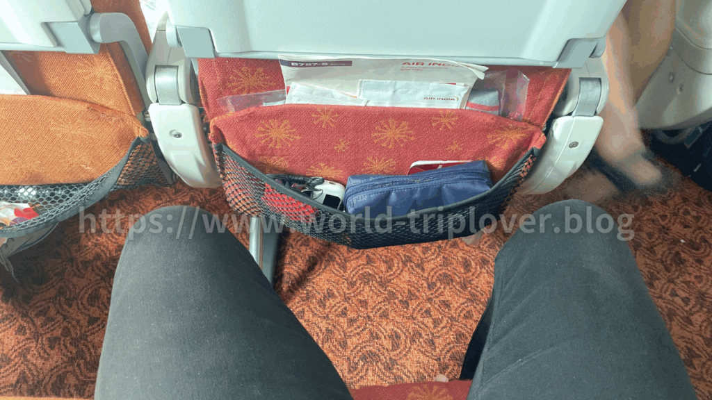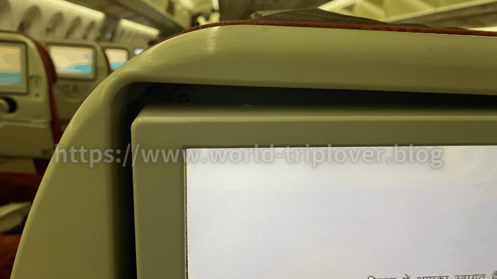 機内に入った瞬間から「インドらしさ」を感じるのが特徴。シートカバーやカラーリングはインドの伝統色を意識したデザインで、独特の雰囲気がありました。