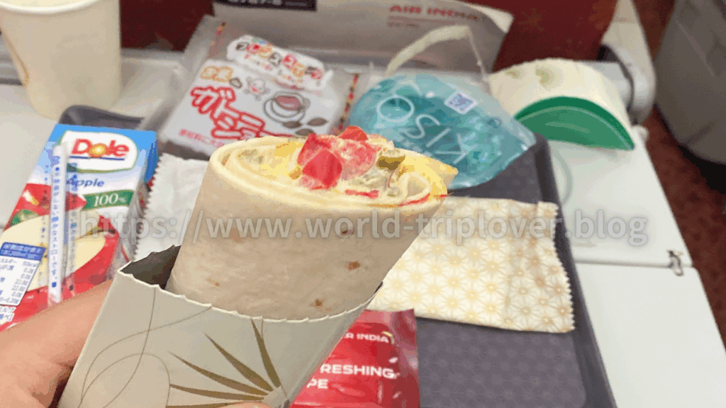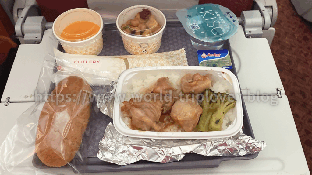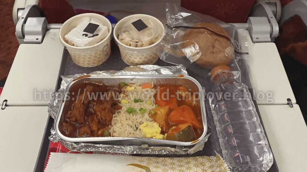 離陸からしばらくすると、機内食が提供されます。メニューは「カレー」か「チキン」を選択できました。