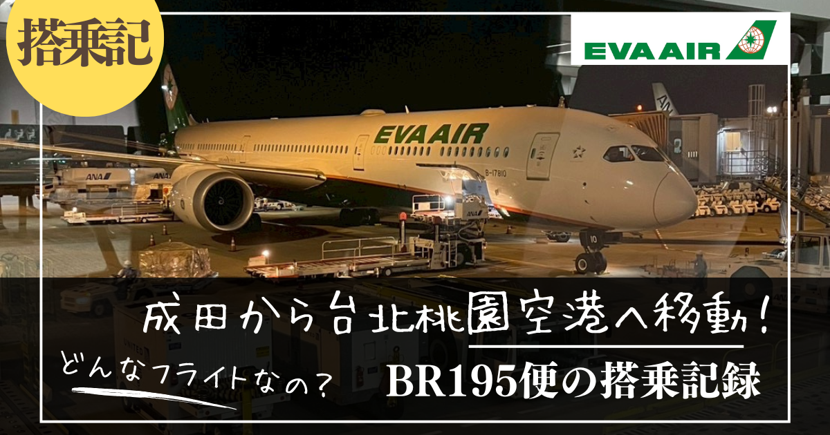 台湾旅行といえば、食べ歩きや夜市巡りが楽しみのひとつですが、飛行機での時間も旅の大切なスタートです。今回は、成田国際空港から台北・桃園国際空港へ向かうエバー航空BR195便に搭乗しました。