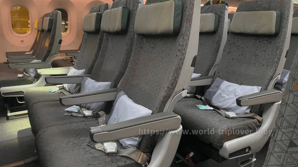 搭乗した瞬間に「新しい機体だな」と感じるほど、清潔感がありました。加湿機能も備わっているため、長時間のフライトでも喉や肌の乾燥が少ないのがポイントです。
