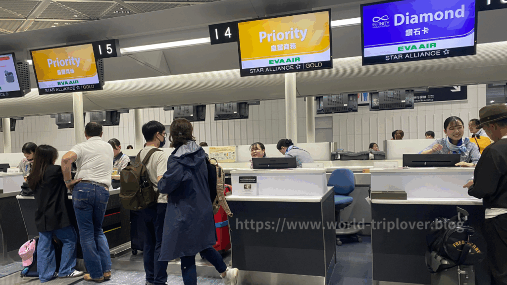 エバー航空はスターアライアンスに加盟しているため、スターアライアンスゴールドメンバーやビジネスクラス利用者は優先チェックインカウンターを利用できます。