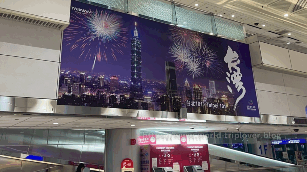 ほぼ定刻通り、23時20分頃に台北・桃園国際空港に到着しました。入国審査もスムーズで、20分ほどで到着ロビーへ。