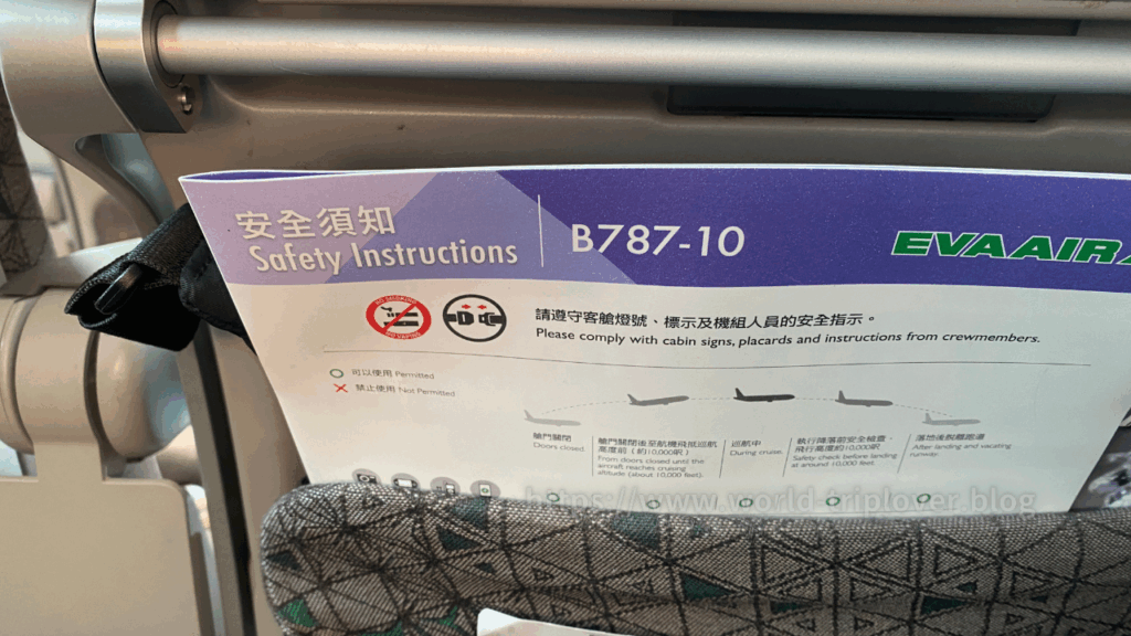 今回利用したBR196便の機材は、ボーイング787-10。行きのBR195便と同じ機材タイプで、最新の設備が整った快適な機体です。