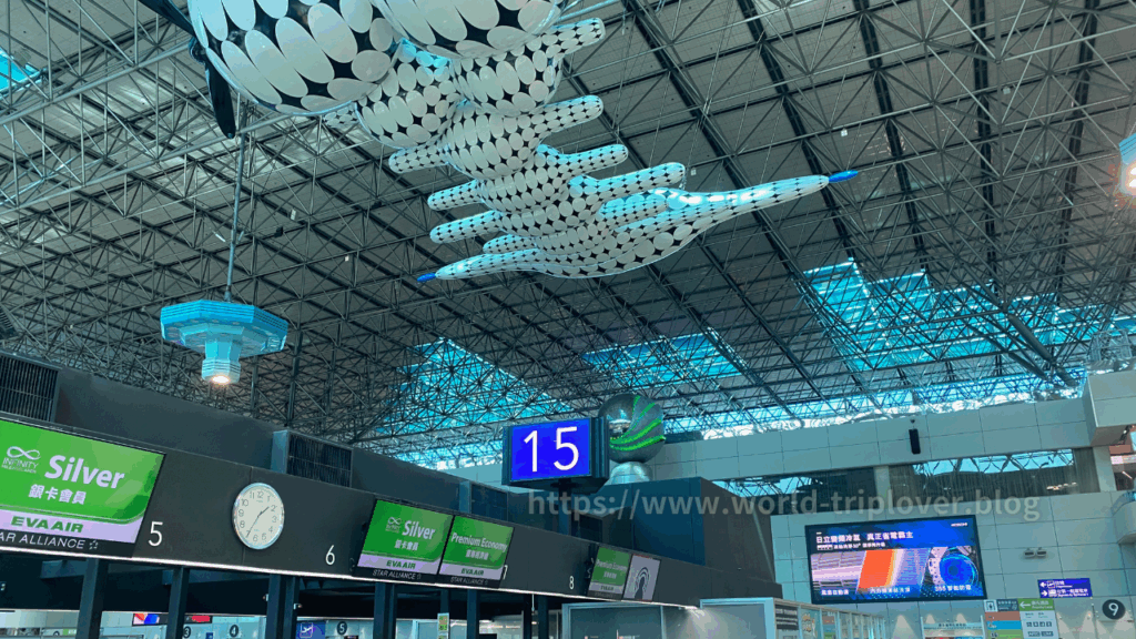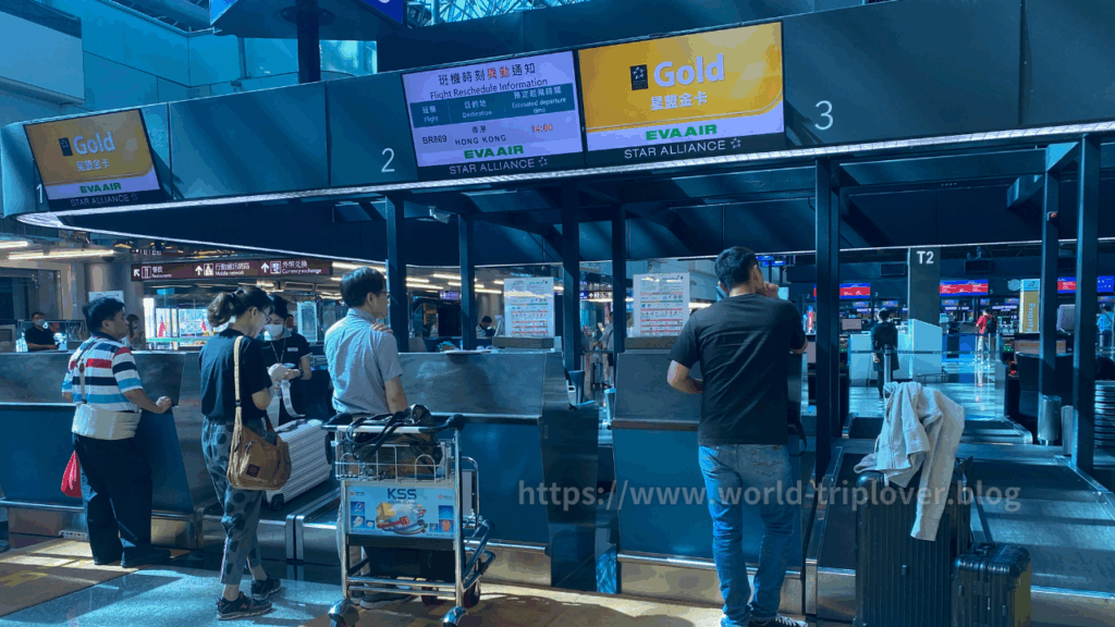 第2ターミナルに入ると、すぐにエバー航空のカウンターが並んでおり、スタッフが笑顔で案内してくれます。さすが台湾の代表的な航空会社だけあって、対応はとても丁寧。日本語を話せるスタッフも多いので安心です!