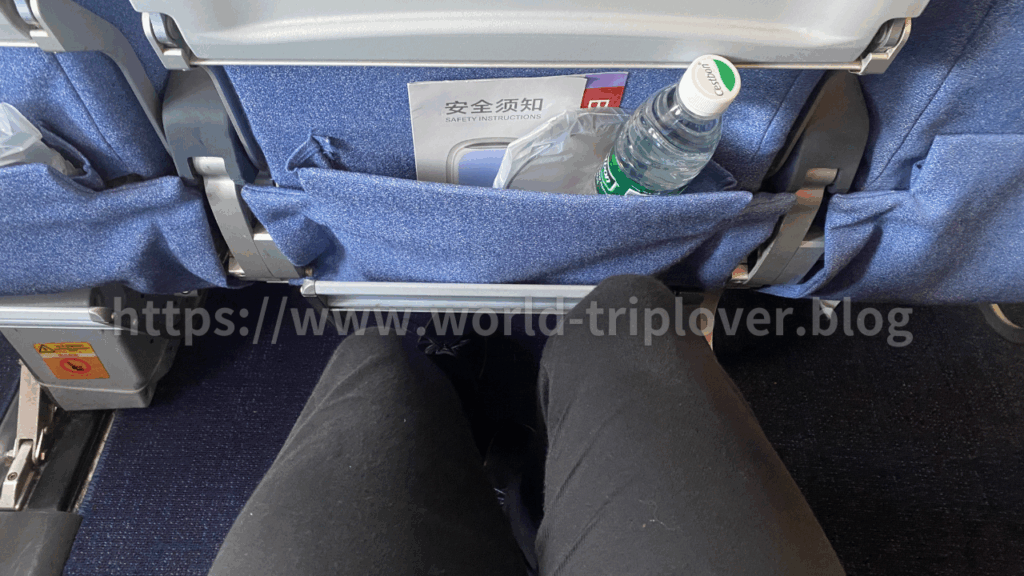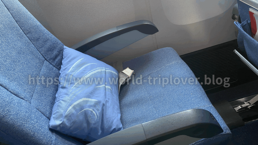 実際に座ってみると、足を組めるほどのスペースがあり、短時間のフライトなら十分すぎる快適さです。