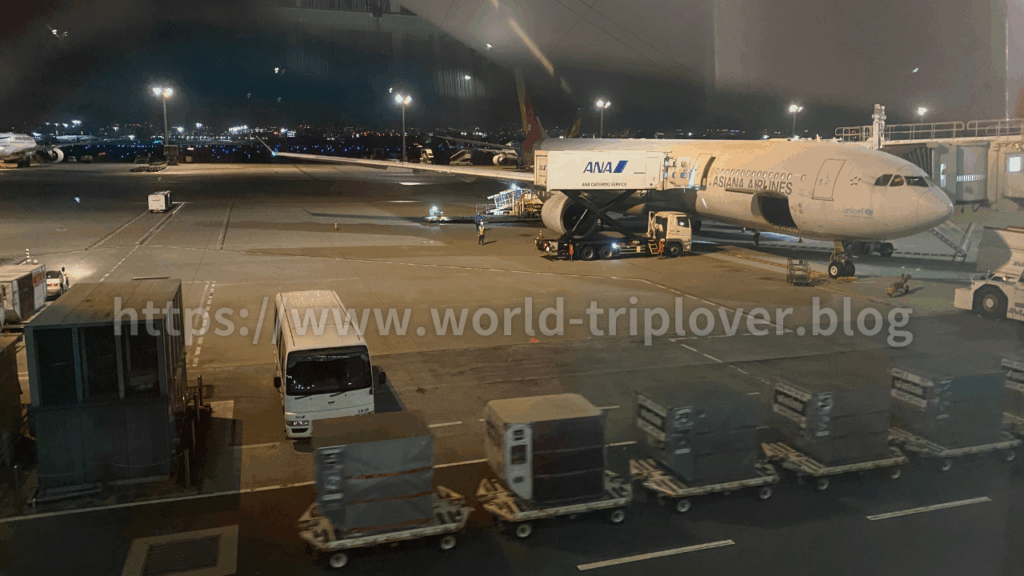 深夜便を利用すると、空港の混雑が少なくて快適だと思われがちですが、実際にはそうでもありません。今回搭乗したのは、羽田発仁川行きのアシアナ航空OZ177便の深夜便。