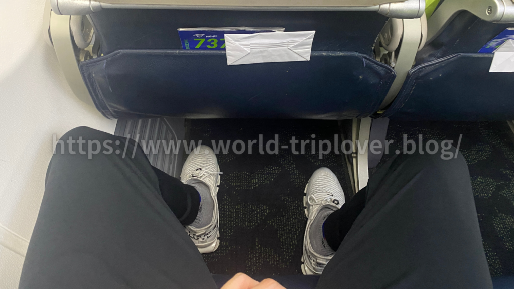 エコノミークラスの座席ですが、想像していたよりもゆとりのある座席間隔でした。